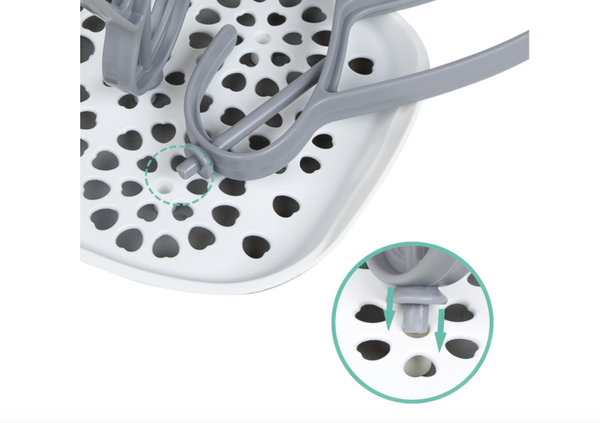 Onze nieuwe en verbeterde flessendroogrek is de perfecte oplossing om babyflessen en accessoires op een veilige en schone manier te laten drogen. Het droogrekje beschikt over veel ruimte zodat je babyflessen, spenen en andere accessoires op een veilige en hygiënische manier kunt laten drogen na het schoonmaken en/of uitkoken. Het droogrek is voorzien van een lekbak zodat je aanrecht altijd schoon en droog blijft. Ons droogrek is van hoge kwaliteit en gemakkelijk schoon te maken met de hand of in de vaatwasser.