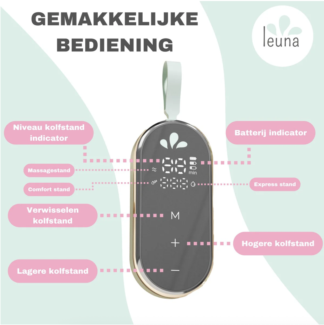 Onze borstkolf is ook gemakkelijk schoon te maken. Dankzij de easy clean technologie kan je de Leuna elektrische borstkolf makkelijk in- en uit elkaar halen en de onderdelen zijn ontworpen om gemakkelijk schoon te maken. Je kunt de onderdelen zelfs in de vaatwasser doen. ( vaatwasser minimaal op 55 graden instellen)
